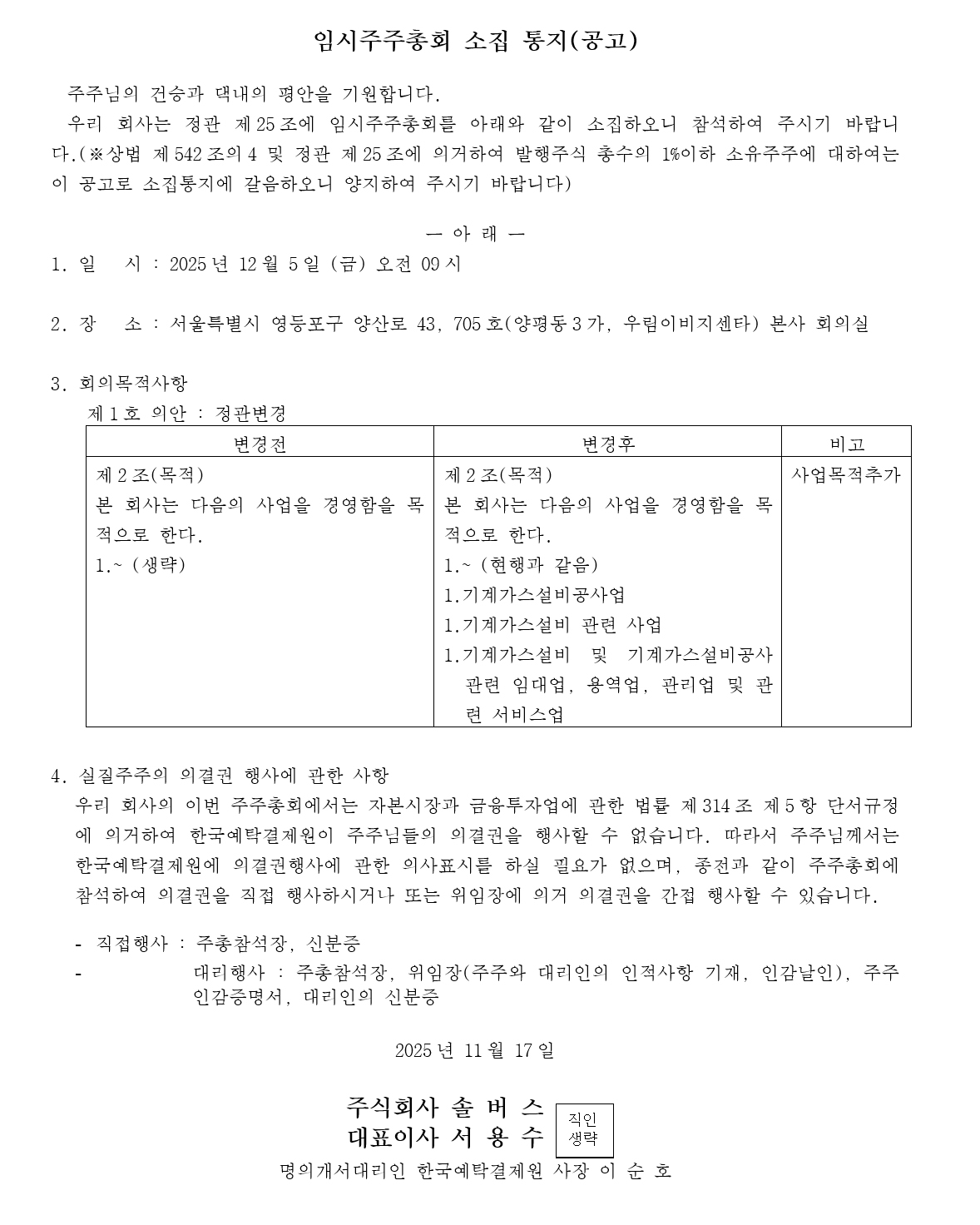 임시주주총회 소집 통지(공고)